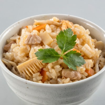 お米と一緒に炊くだけ♪コクのある比内地鶏スープでうまみたっぷりの炊き込みご飯がつくれます。ごぼう、にんじん、たけのこ入り♪