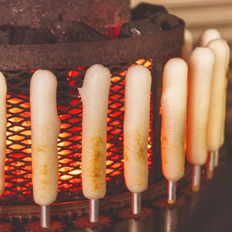 1本1本丁寧に炭火で焼いています。もちもちふっくら香ばしいきりたんぽが自慢です。