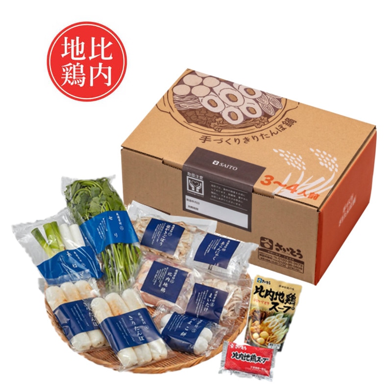 手づくりきりたんぽ6本、だまこ餅6個、比内地鶏肉250g、比内地鶏スープ200g×1袋・50g×1袋、せり130g、ねぎ150g、舞茸80g、糸こんにゃく100g、笹がきごぼう60g