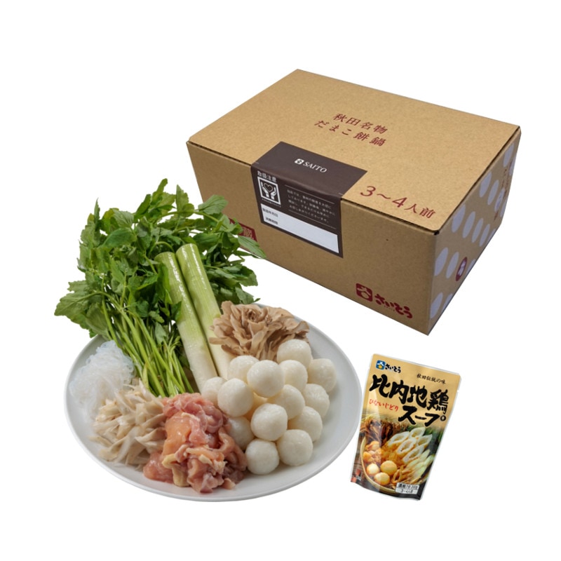 だまこ餅20個、鶏肉180g、比内地鶏スープ200g、せり100g、ねぎ120g、舞茸80g、糸こんにゃく100g、笹がきごぼう60g